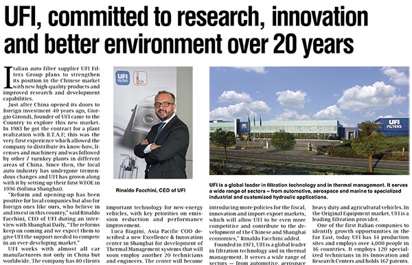 UFI濾清器集團液壓部門亮相于上海舉辦的