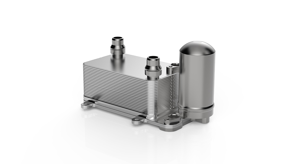 先進(jìn)的真空釬焊熱交換器,用于控制電動車軸變速箱油的溫度,并將電動車軸冷卻液與冷卻系統(tǒng)的其余部分連接起來。