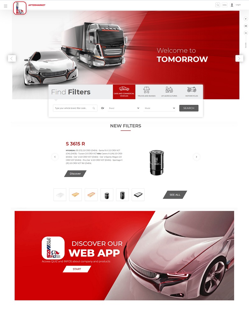 The new www.ufi-aftermarket.com/webapp and www.sofima-aftermarket.com/webapp interactive web apps are visually striking features that make the new brand websites unique: two dynamic, multilingual applications with a dedicated quiz section where users can test their knowledge of the quality and technology involved in OEM and aftermarket products.